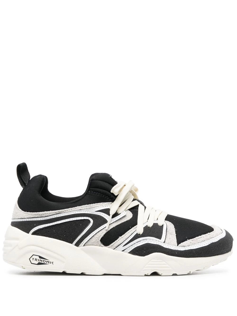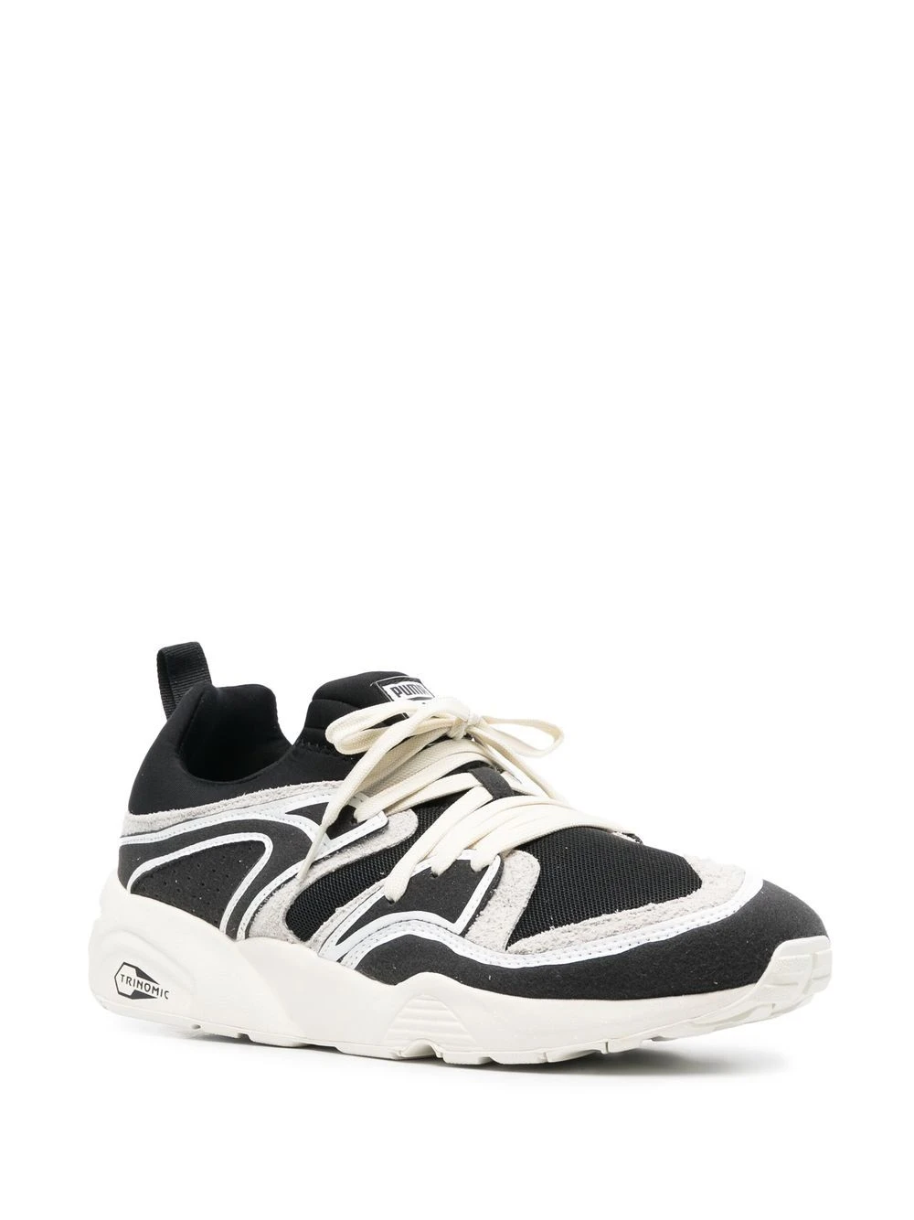 Noir/blanc, veau velours, design à empiècements, bout rond, fermeture à lacer sur le devant, languette à patch logo, semelle intérieure à logo, languette d’enfilage au talon, semelle épaisse en caoutchouc.