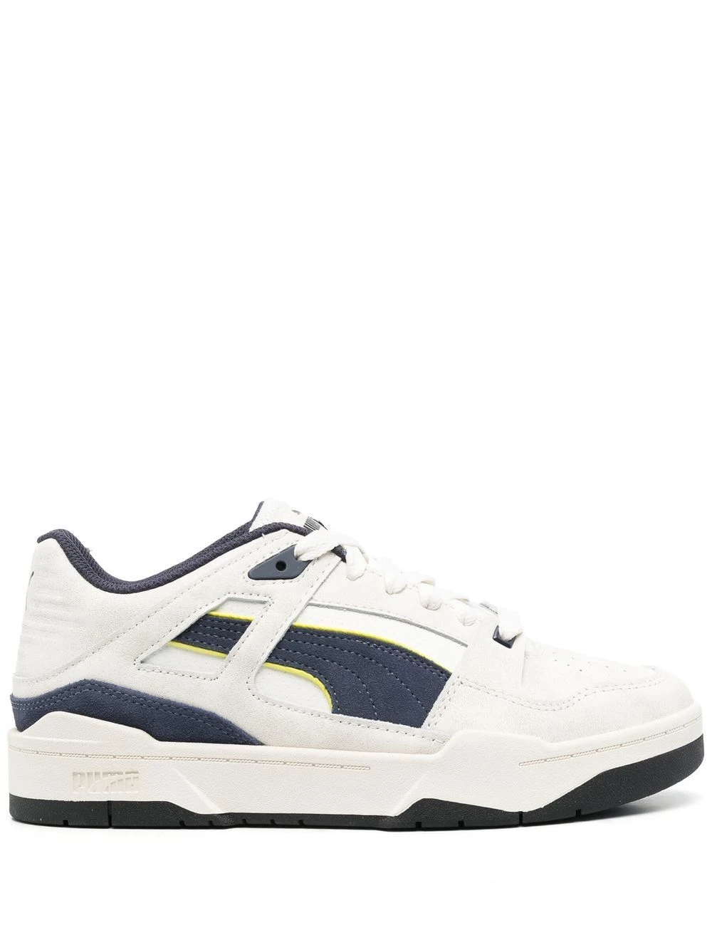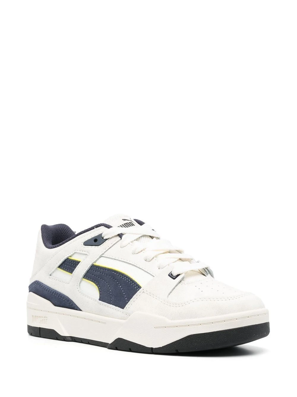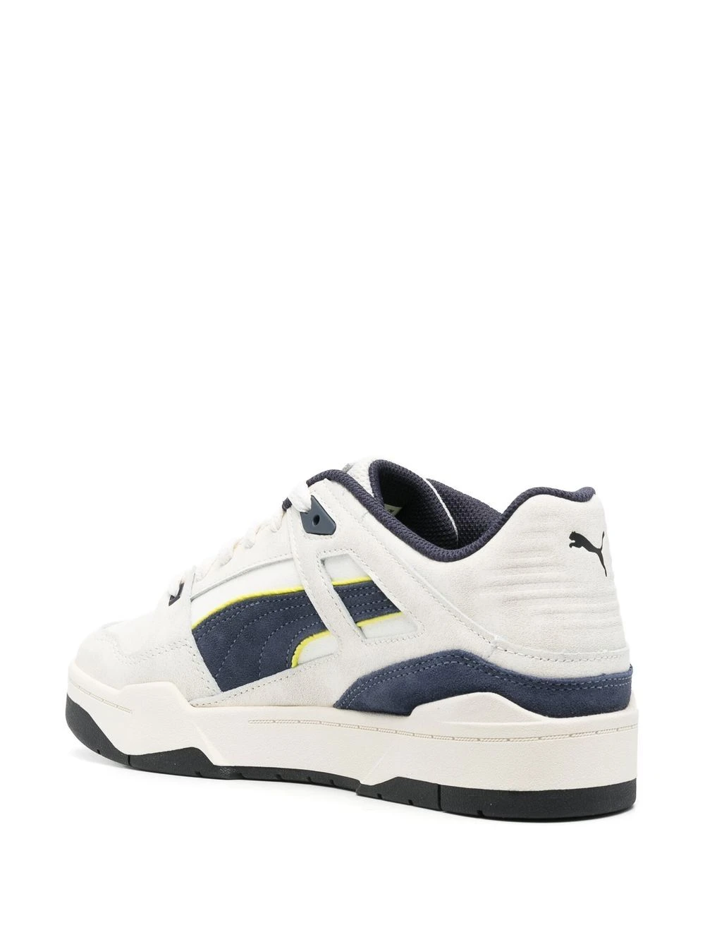 Blanc cassé, bleu marine, vert fluorescent, cuir de veau, design colour block, détails de perforations, fermeture à lacer sur le devant, languette à patch logo, logo imprimé à l’arrière, semelle intérieure à logo, semelle plate en caoutchouc.