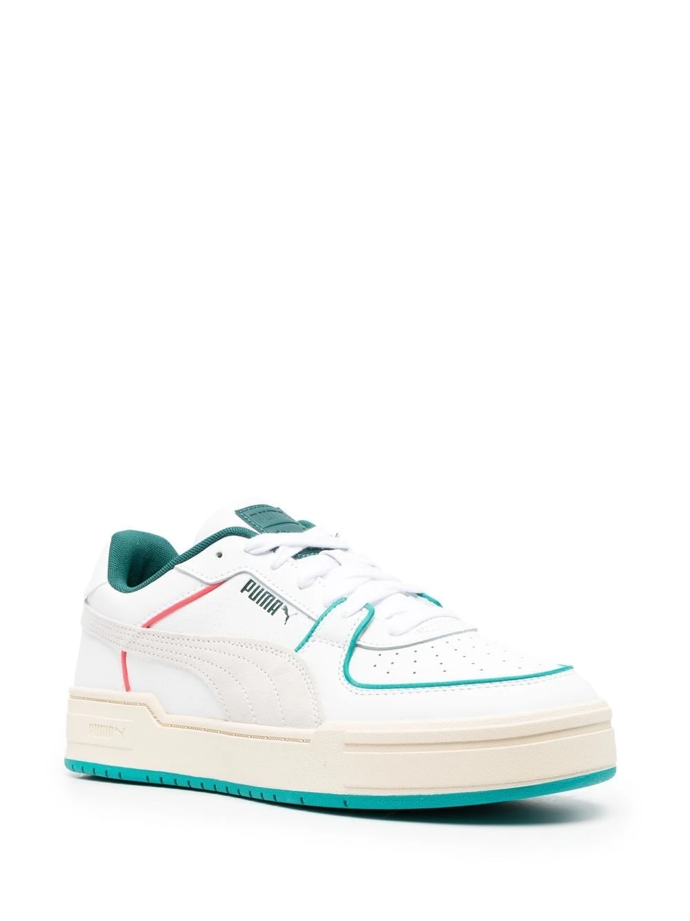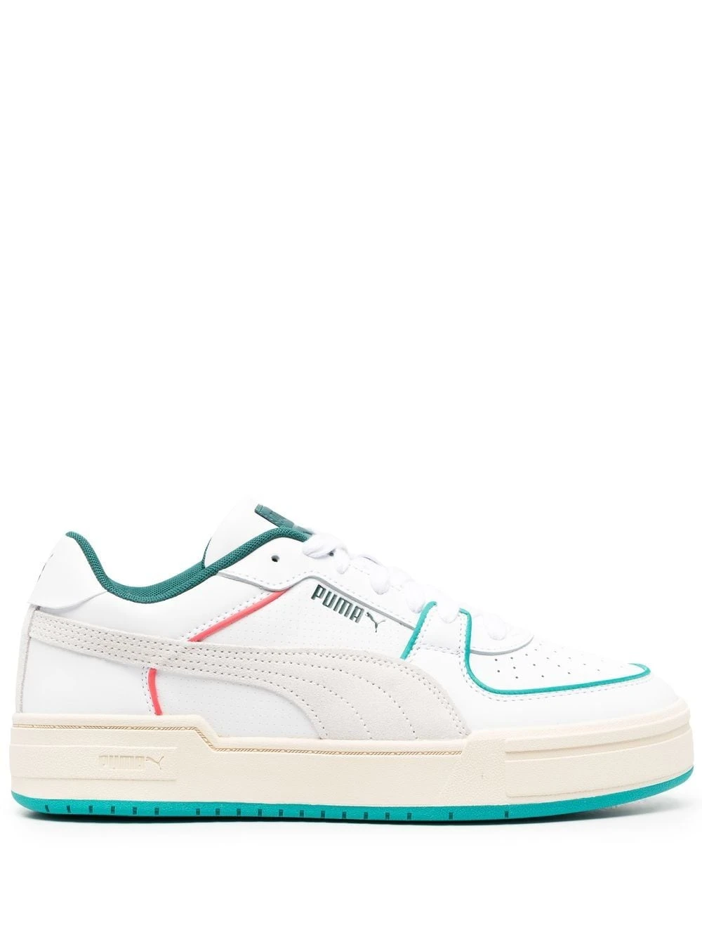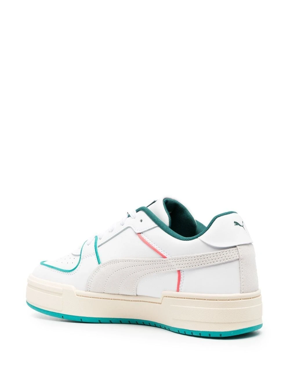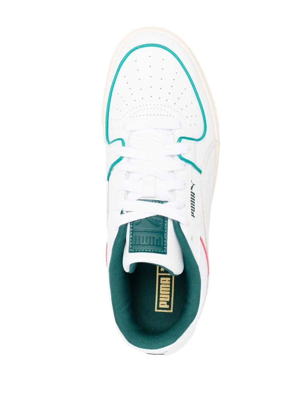 Blanc/multicolore, cuir de veau, finitions passepoilées multicolores, patch logo sur le côté, détails de perforations, fermeture à lacer sur le devant, languette à patch logo, contrefort à logo, semelle en caoutchouc.