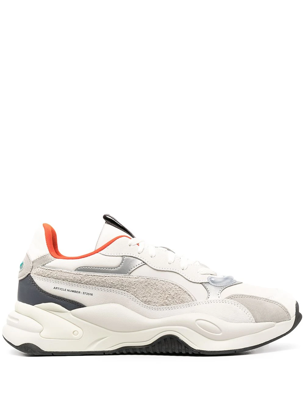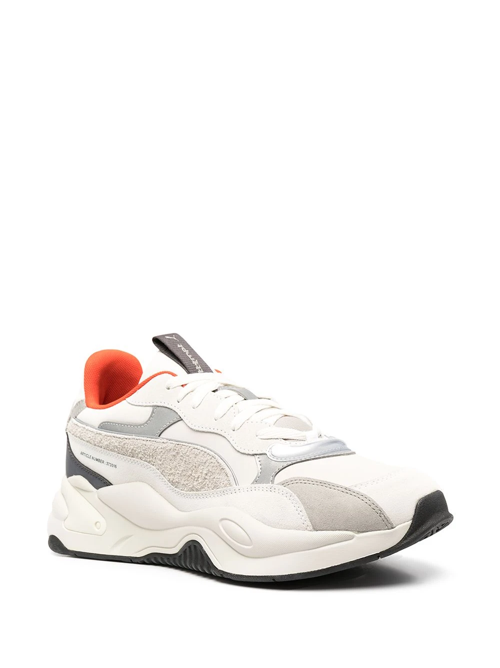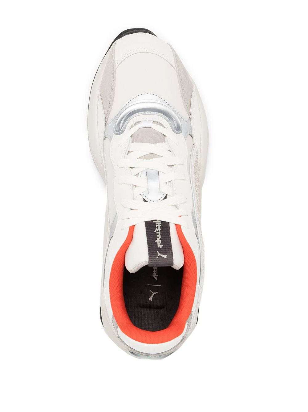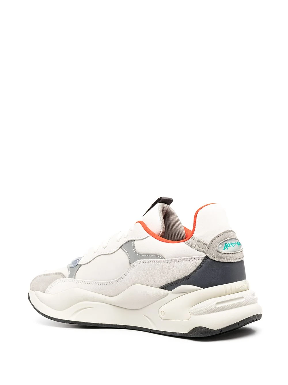 Design ton sur ton, design à empiècements, semelle épaisse en caoutchouc, fermeture à lacer sur le devant. Couleur : blanc. Matière : cuir.
