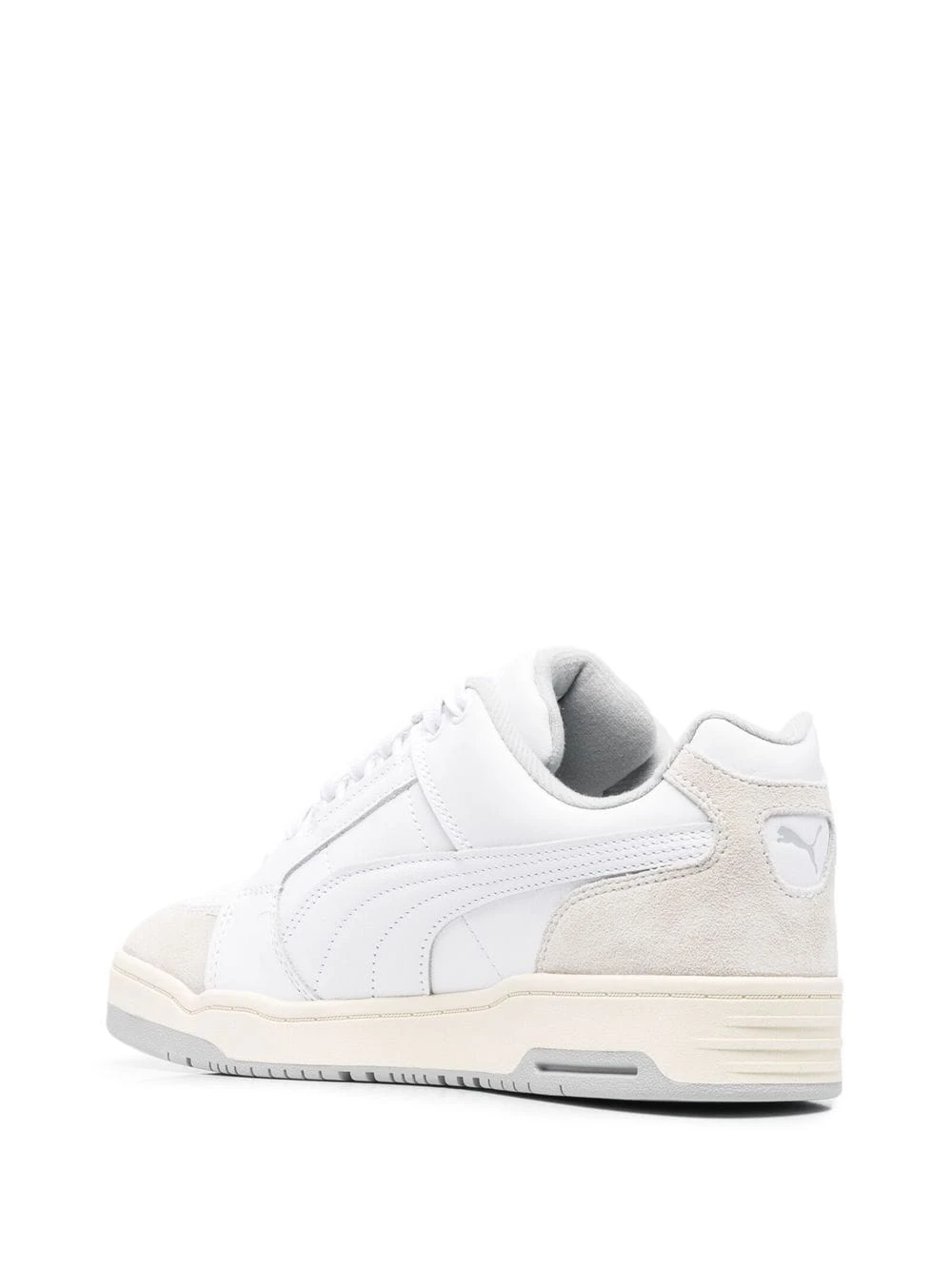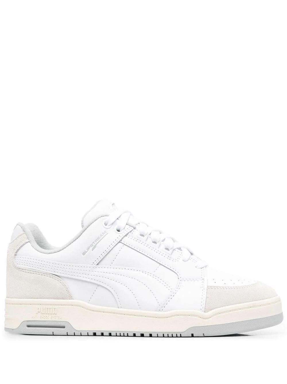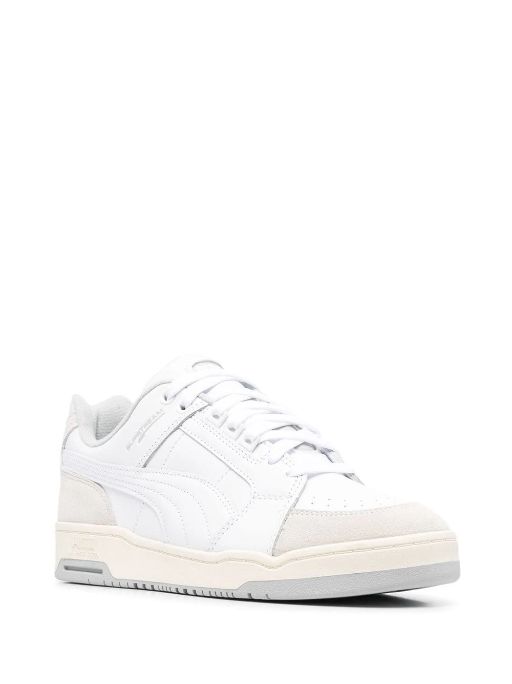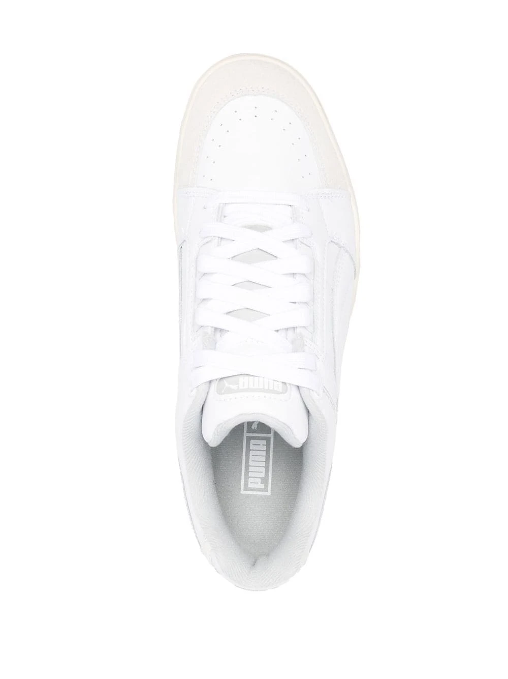 Blanc cassé, cuir, fermeture à lacer sur le devant, bout rond, semelle plate en cuir.