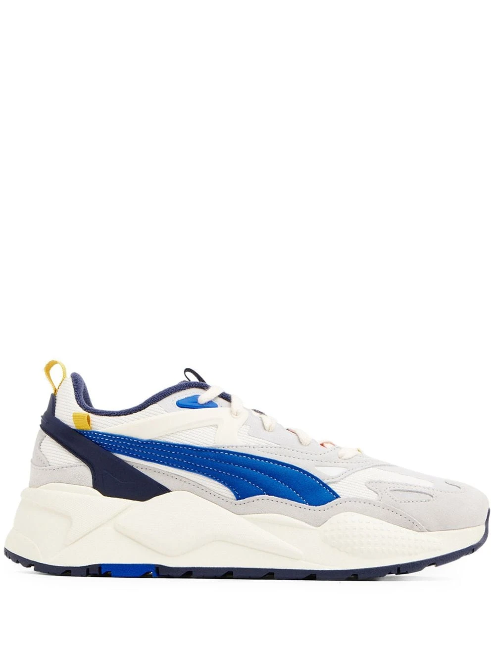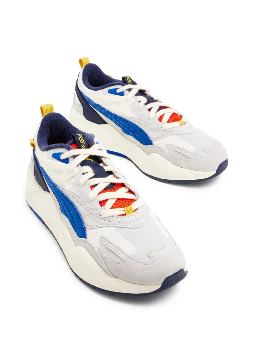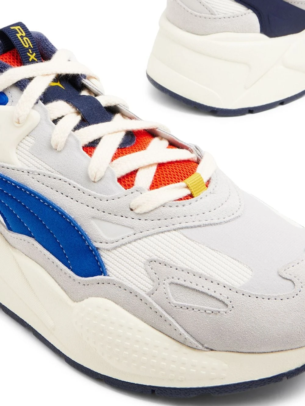 Gris clair, multicolore, daim, design à empiècements, bout rond, fermeture à lacer sur le devant, semelle intérieure à logo, semelle plate en caoutchouc.