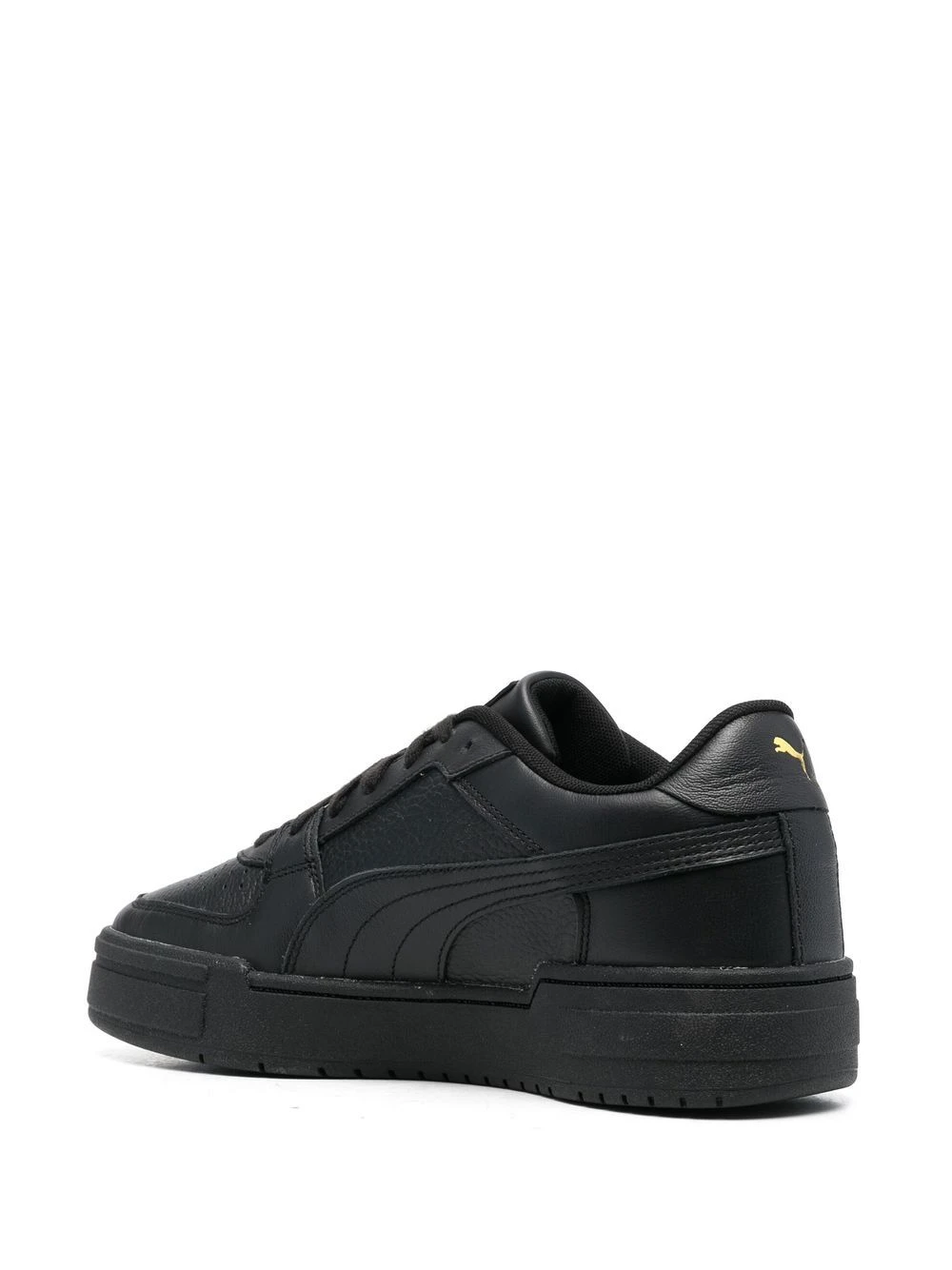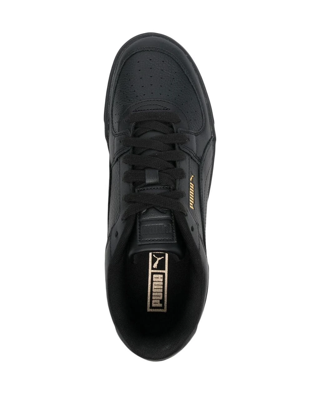 Noir de jais, cuir de veau, détails de perforations, logo imprimé sur le côté, fermeture à lacer sur le devant, semelle intérieure à logo, bout rond, semelle plate en caoutchouc.