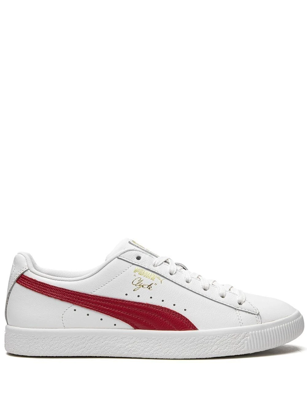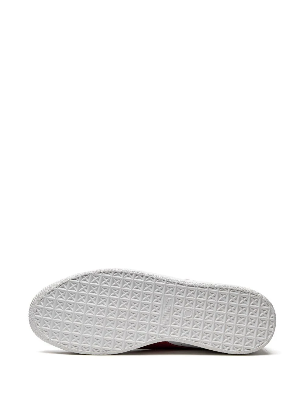 Détail de rayure latérale, bout rond, fermeture à lacer sur le devant, languette à patch logo, logo embossé, semelle intérieure à logo, contrefort à logo, semelle plate en caoutchouc. Matière : cuir.