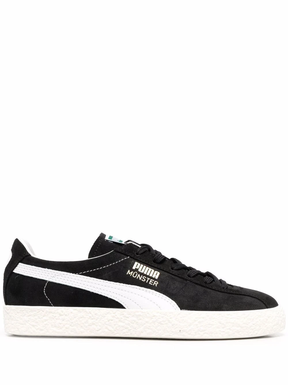 Empiècements en daim, logo imprimé sur le côté, appliqué logo, languette à patch logo, bout rond, fermeture à lacer sur le devant, semelle intérieure à coussinet plantaire, contrefort à logo, semelle extérieure en caoutchouc, semelle en caoutchouc. Matière : cuir.