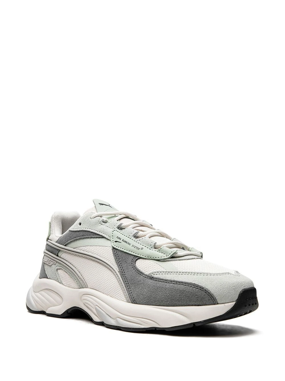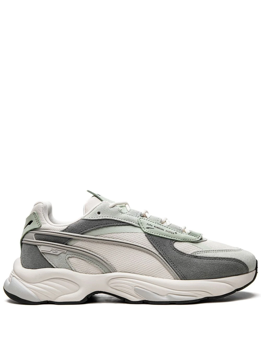 Gris foncé, blanc ivoire, vert, daim, design à empiècements, languette à logo imprimé, bout rond, fermeture à lacer sur le devant, semelle épaisse en caoutchouc. Cette paire vous est proposée par un fournisseur premium de baskets dont la sélection se compose des baskets parmi les plus rares et les plus recherchées au monde.
