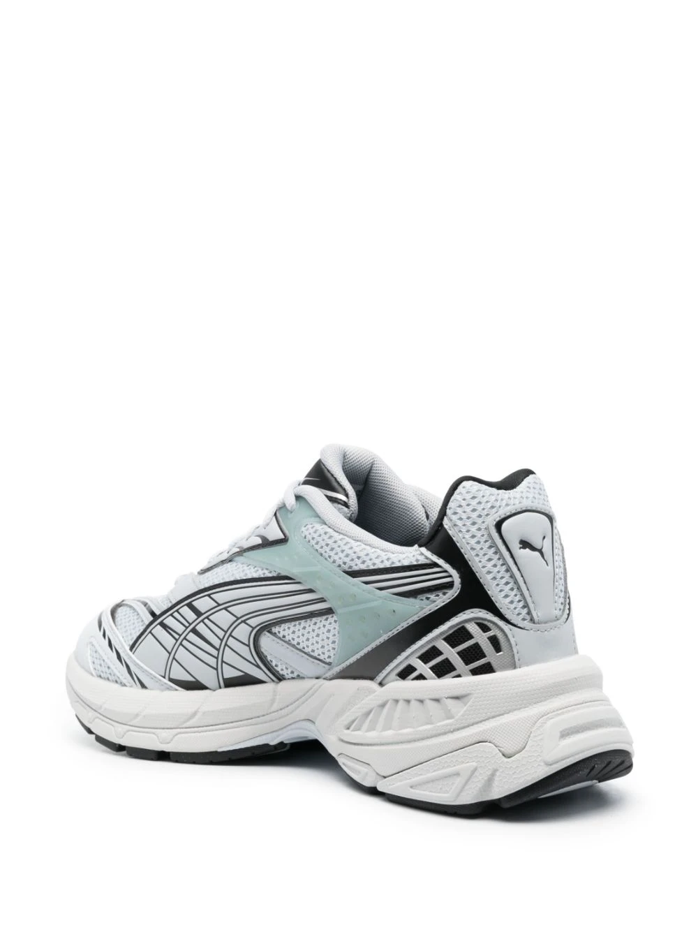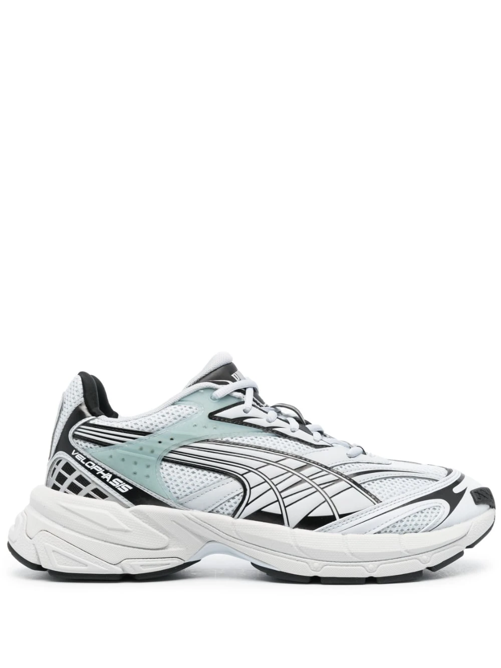 Gris perle, noir, blanc, design à empiècements, empiècement en mesh, languette à patch logo, fermeture à lacer sur le devant, contrefort à logo, semelle intérieure à logo, semelle épaisse en caoutchouc.
