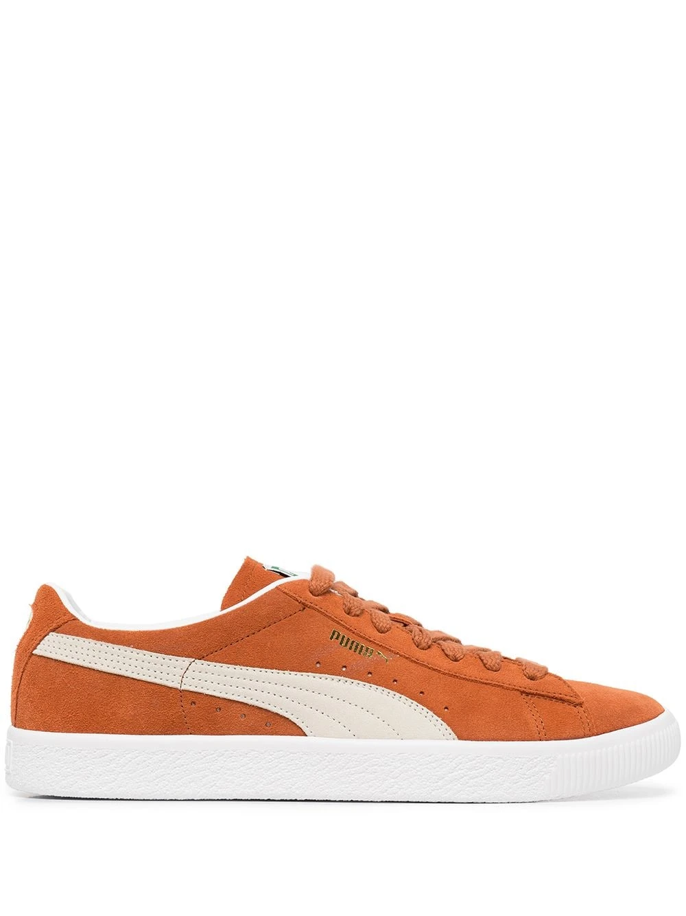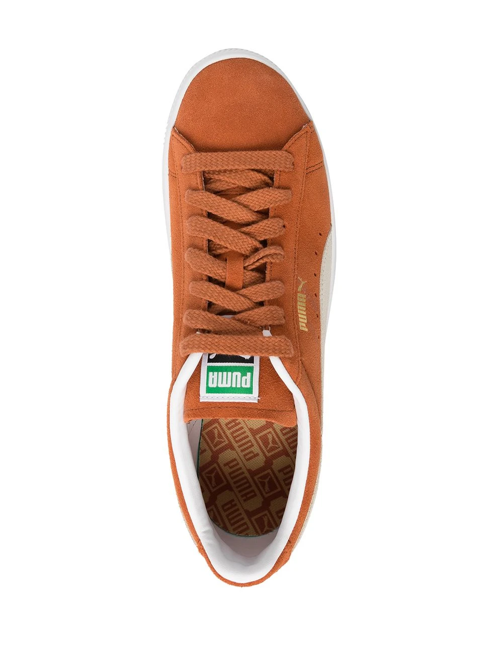 Patch logo sur le côté, contrefort à logo, bout rond, fermeture à lacer sur le devant, semelle plate en caoutchouc. Matière : daim.