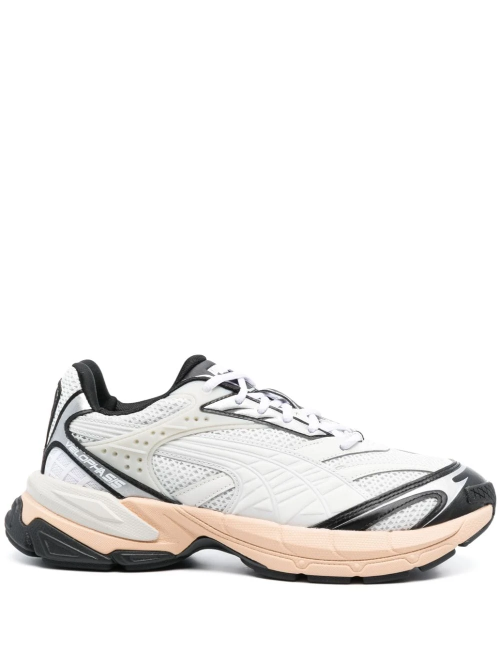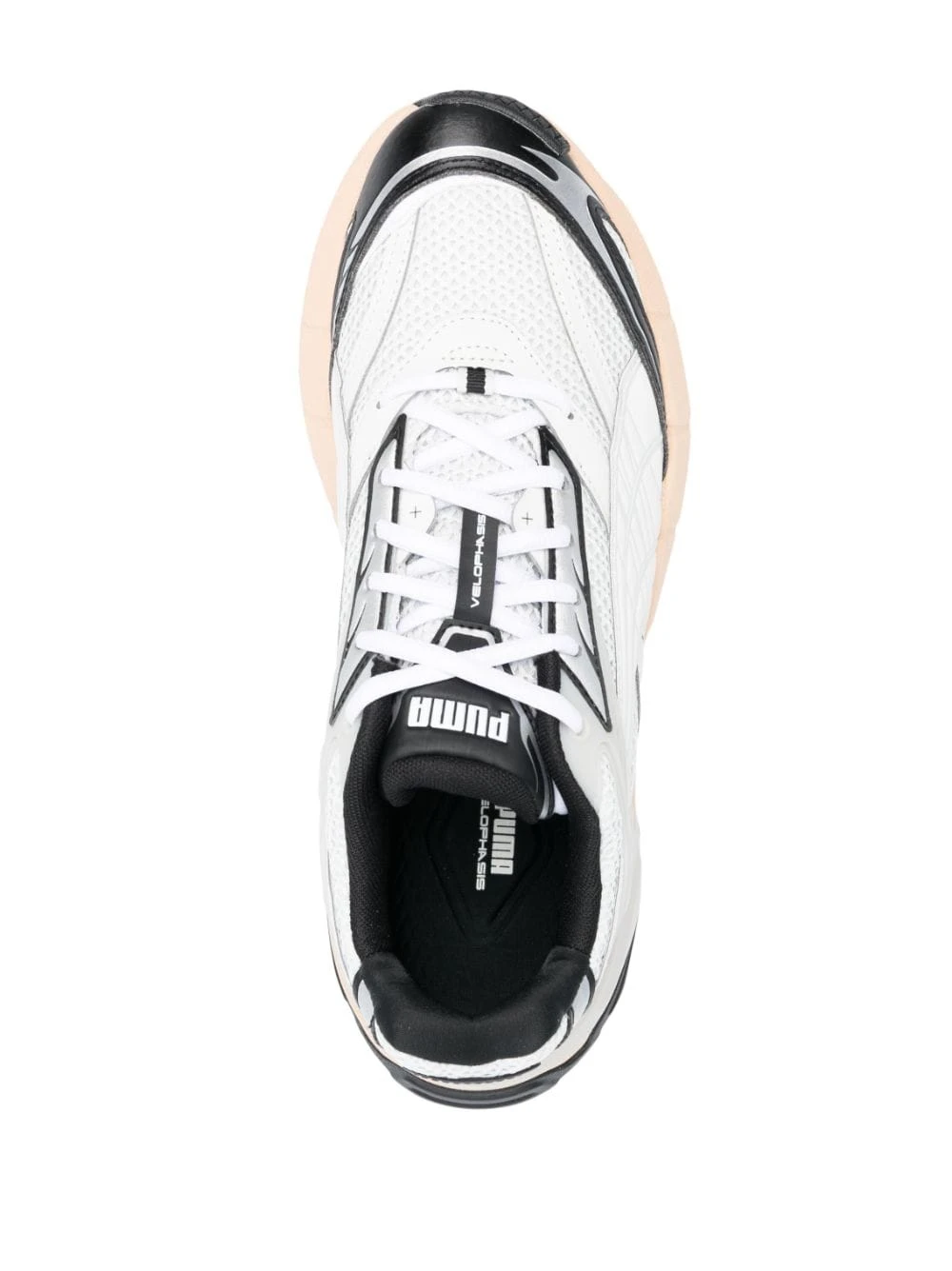 Velophasis Technical sneakers from PUMA featuring white/multicolour, mesh detailing, panelled design, logo-embossed tongue, front lace-up fastening, round toe, branded insole, segmented sole and chunky rubber sole.